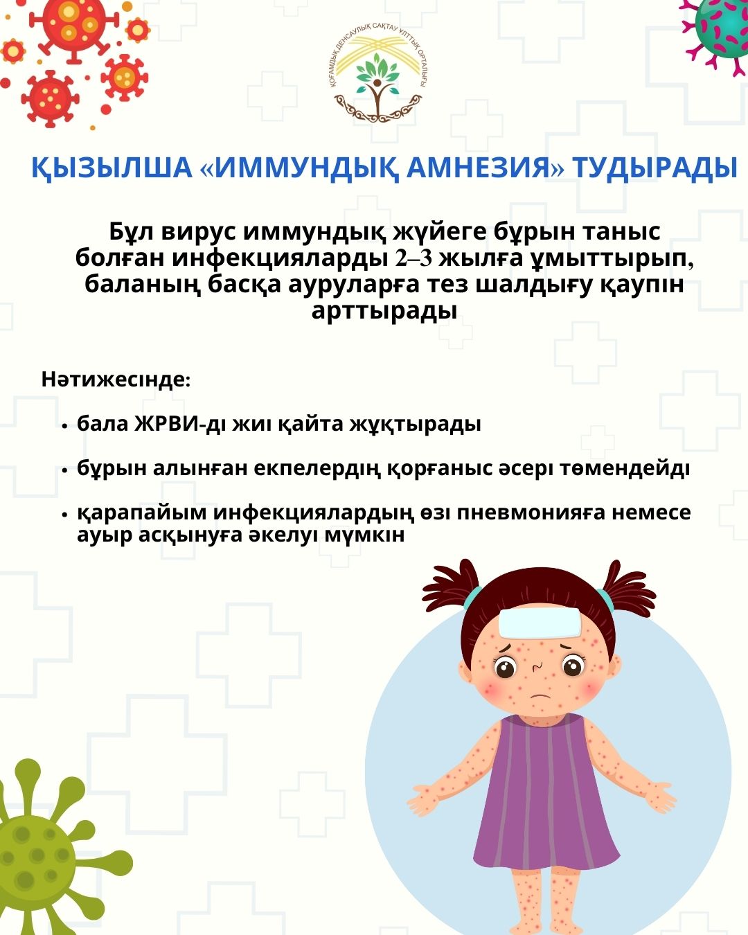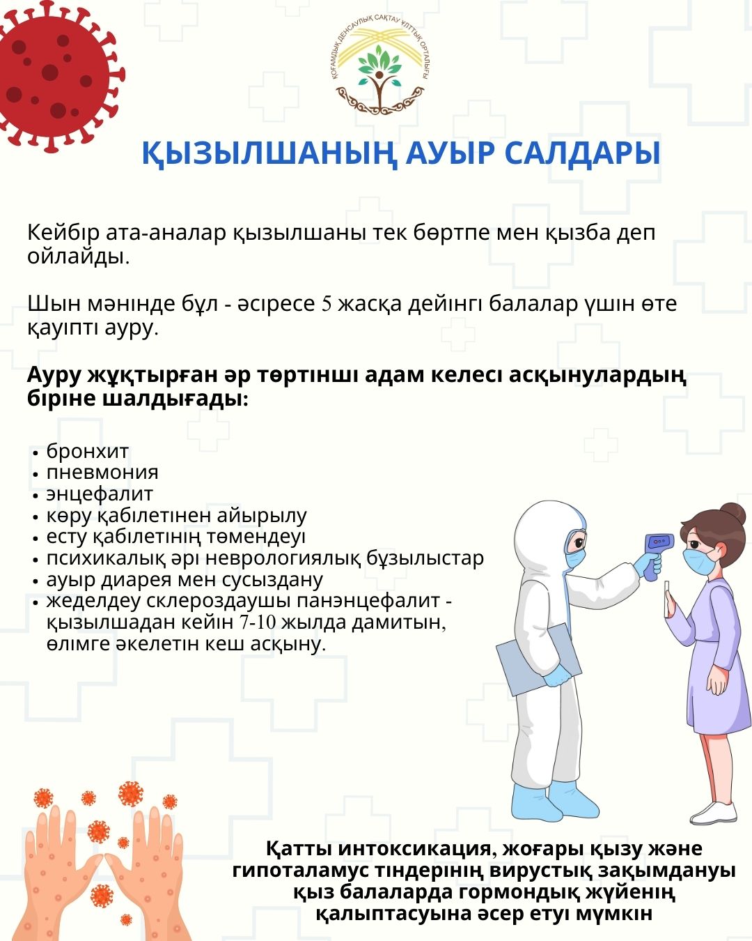 Қызылша әлем бойынша қайта күшейіп, көптеген елдерді алаңдатып отыр. Қазақстанда өткен аптада 103 жаңа жағдай тіркелді, ал жыл басынан бері бұл көрсеткіш 3 мыңнан асты. Бұл - вакцинация деңгейінің төмендеуімен тікелей байланысты қауіпті жағдай.